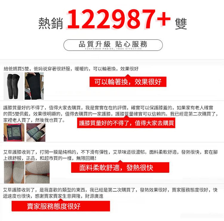 12分鐘前爆款艾草護膝 真正加倍保暖護膝,四季通用,老寒腿、關節涼、膝部不適專用! - 買三送三【6雙】NT$1098 均價183/入,免運